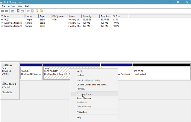 Questo accade quando la partizione di ripristino di sistema, anziché trovarsi prima del disco principale, viene posizionata dopo di esso. (le partizioni per essere estese devono essere attigue)