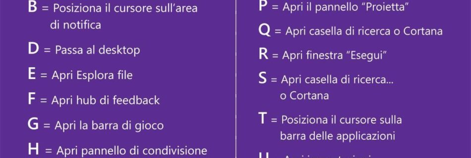 Pillole informatiche…. Tasti a scelta rapida di Windows. (Logo Windows +)