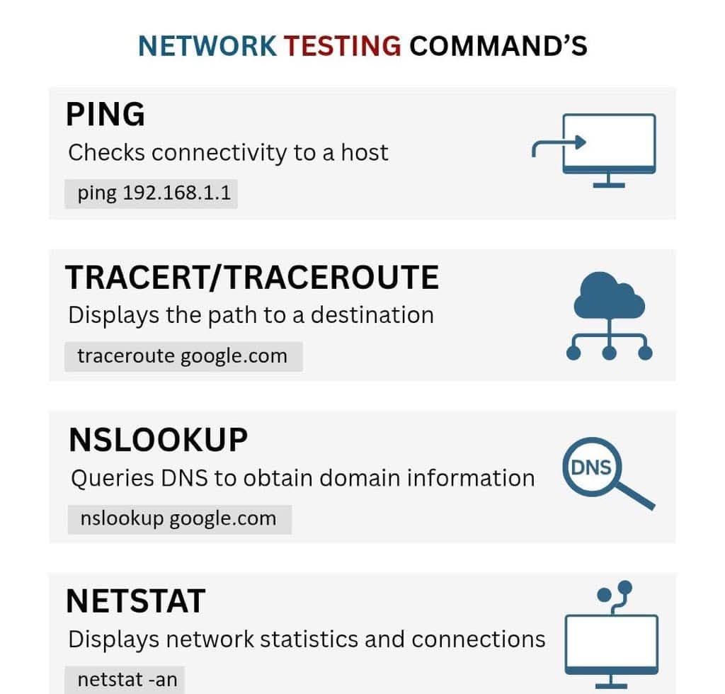 Comandi essenziali per il Network Testing.
